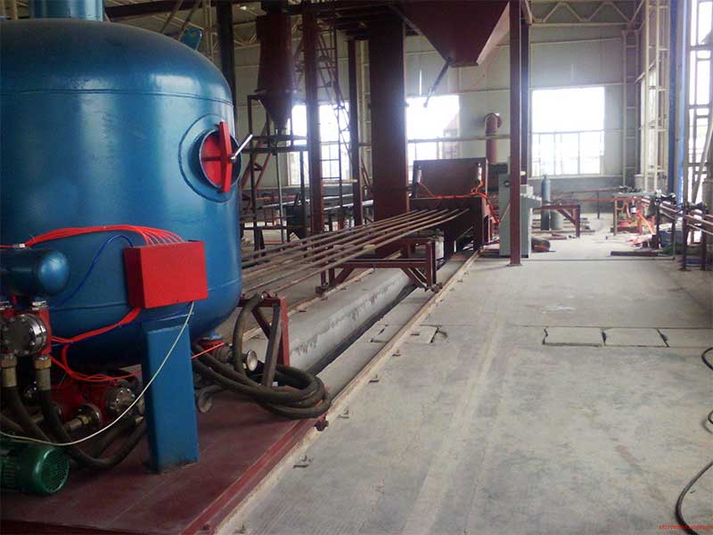 小(xiǎo)口徑的鋼管使用內壁拋丸(wán)機(jī),小口徑鋼管內壁拋丸機主要包括移動台車,砂鬥,噴砂罐,噴槍,噴槍承載車,鋼管承載係統,底部丸(wán)料輸送(sòng)皮帶機,鬥提機,維修平台,分離器,除塵係統,支架,氣動係統,壓縮空氣(qì)係統,電控係統。